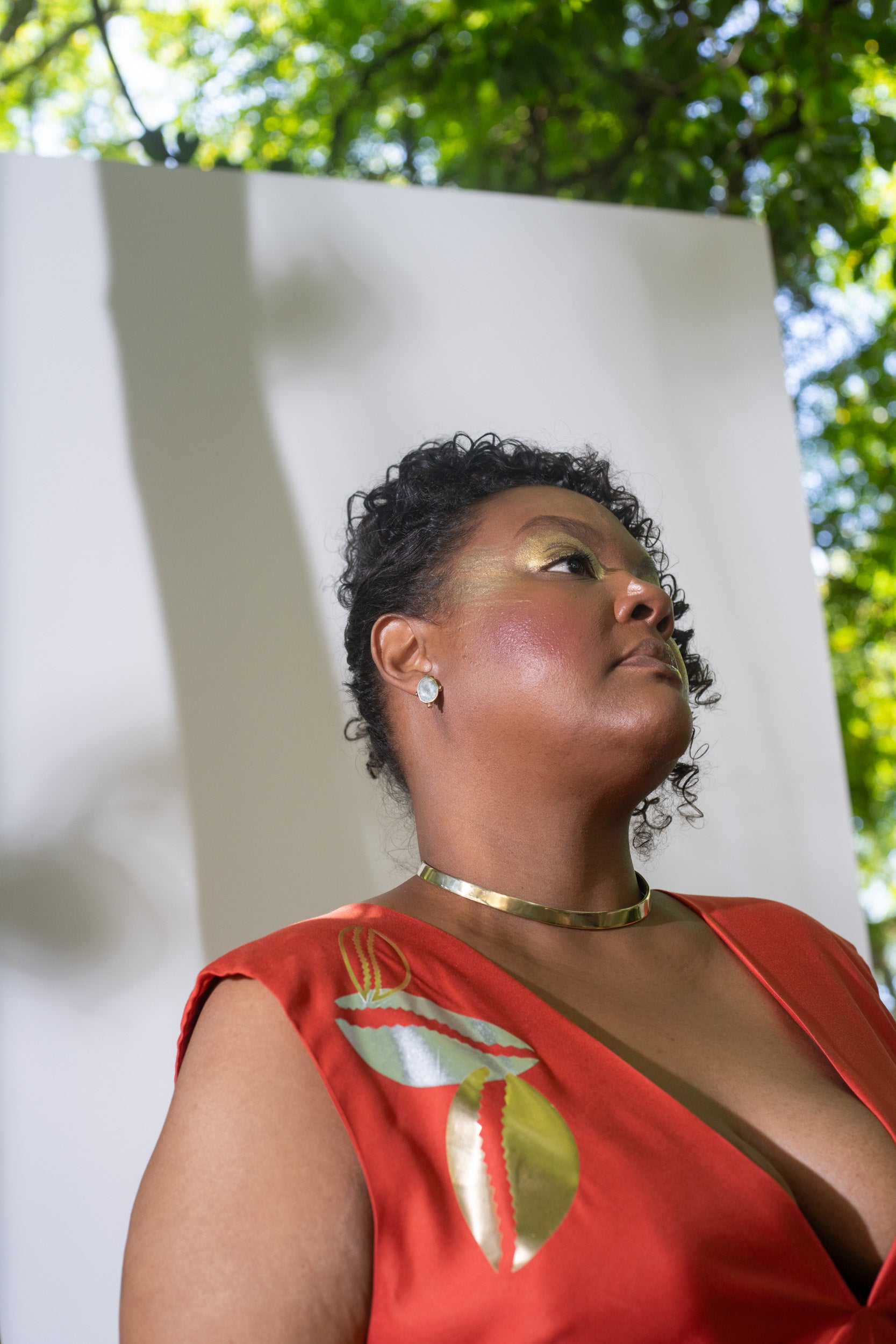O chocker Búzio faz parte dos acessórios desenvolvidos em colaboração com a marca de joias brasileira Brass Oficina, para a coleção ReNascimento. Com um pingente removível, ele pode ser usado de duas maneiras diferentes. Em formato de Búzio, ele destaca um dos símbolos-chave da cultura afro-brasileira.